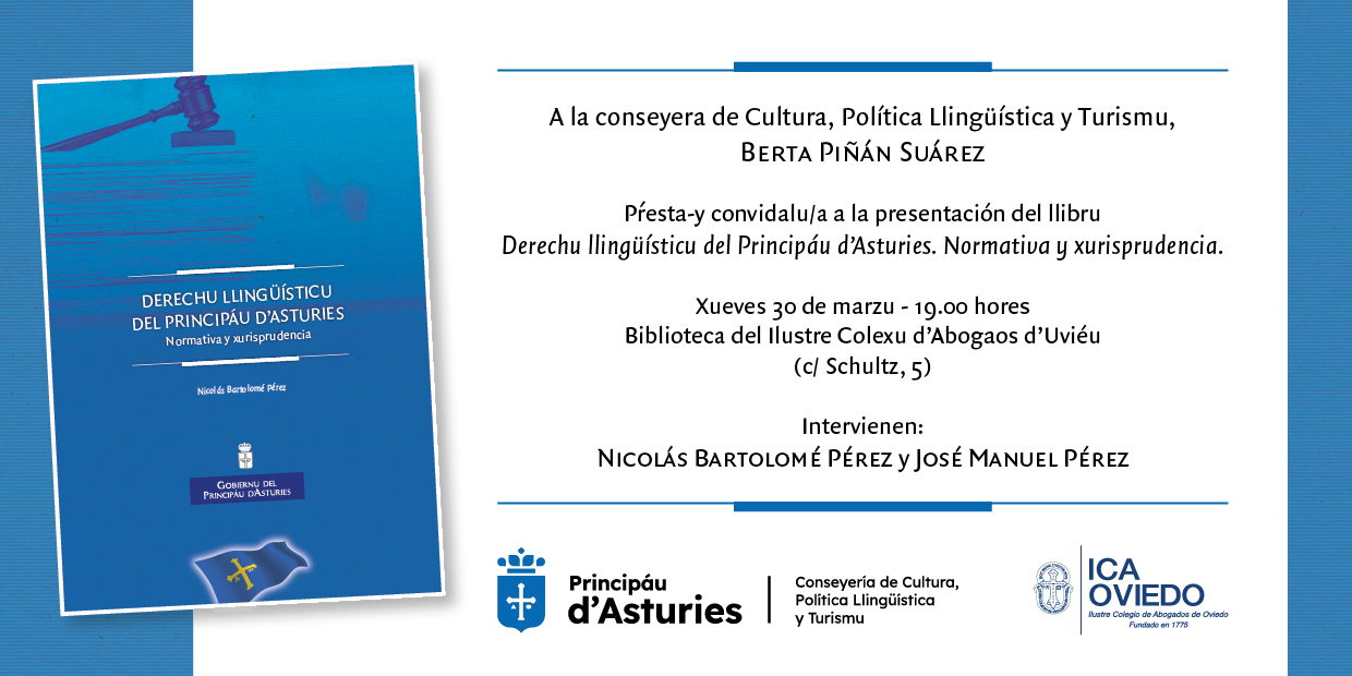 Preséntase el llibru "Derechu llingüísticu del Principáu d'Asturies. Normativa y xurisprudencia" de Nicolás Bartolomé, cola intervención del xurista José Manuel Pérez.